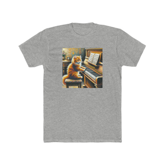 Cat playing piano, oil pastel, Men's Cotton Crew Tee